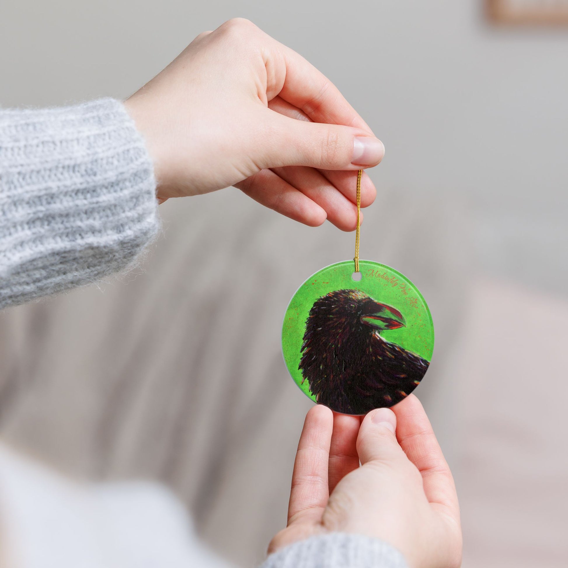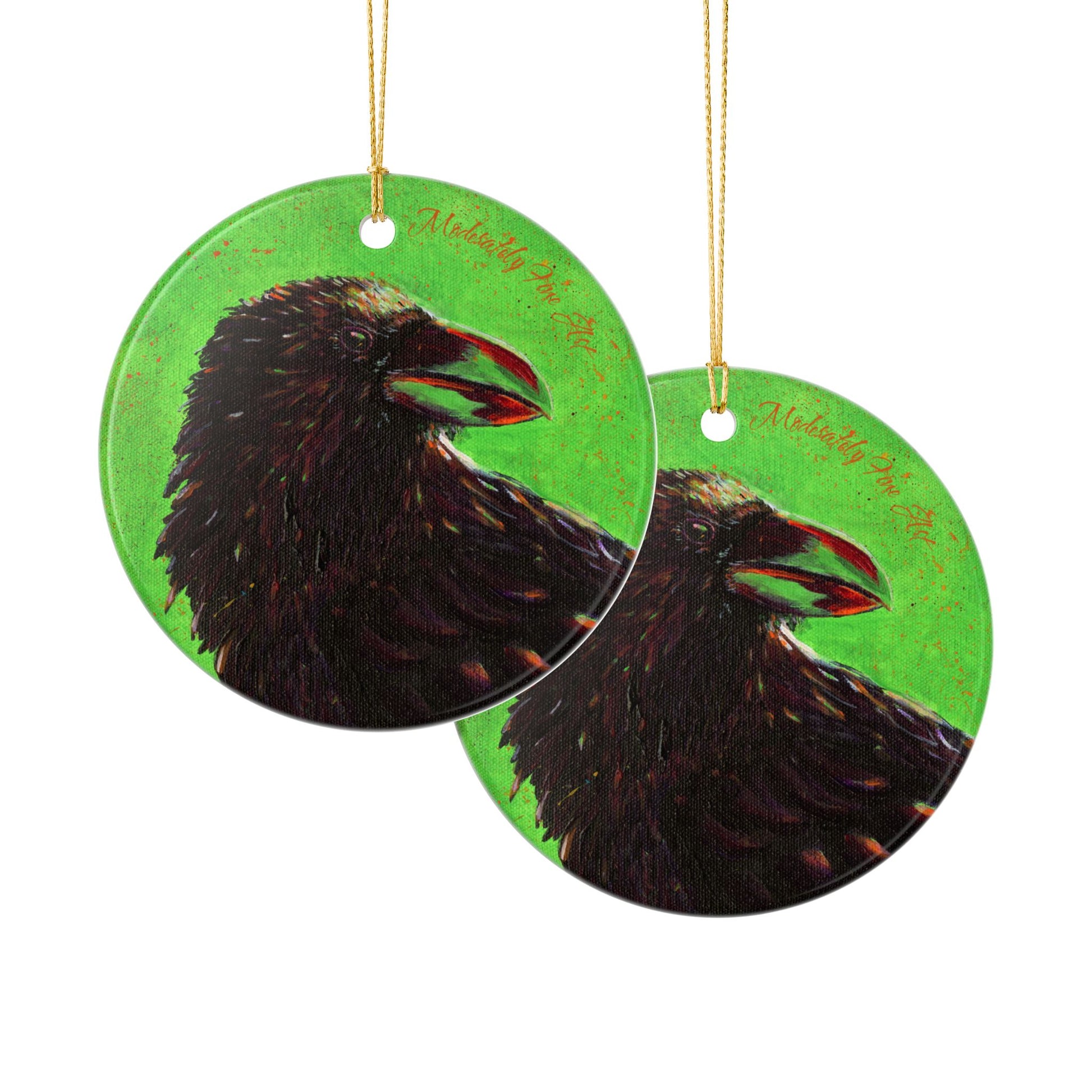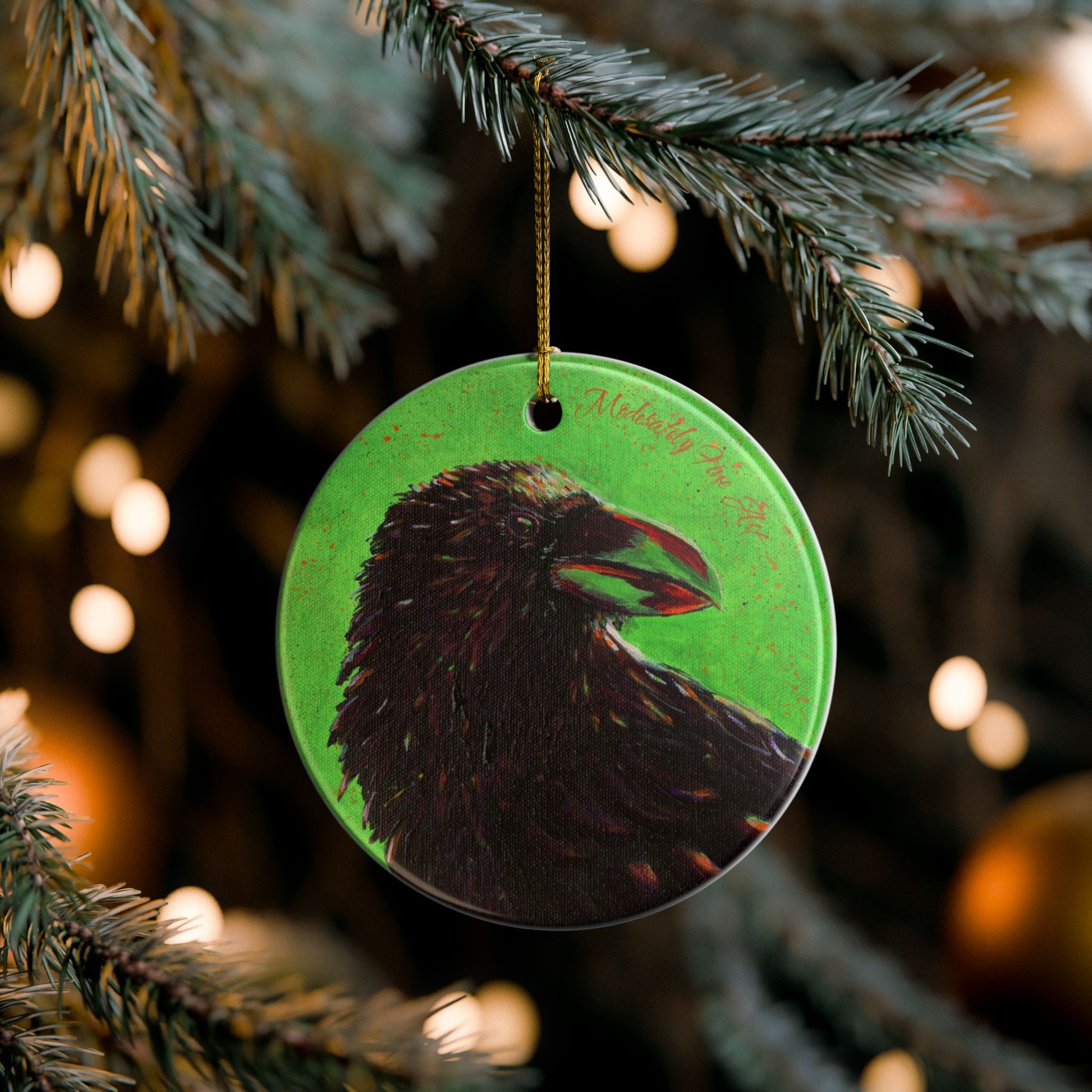Ceramic Ornament Green Crow- Murder Series Holiday Decor