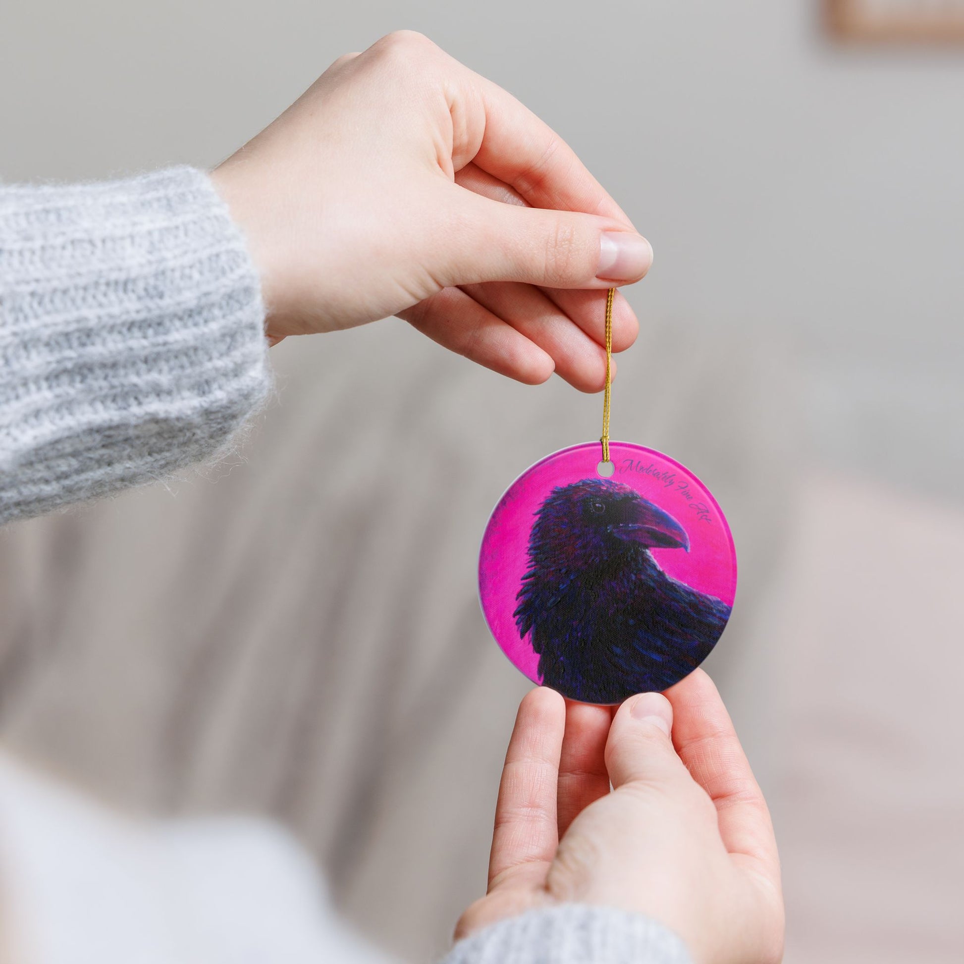 Ceramic Ornament - Pink Crow from Andy Carlson's Murder Series