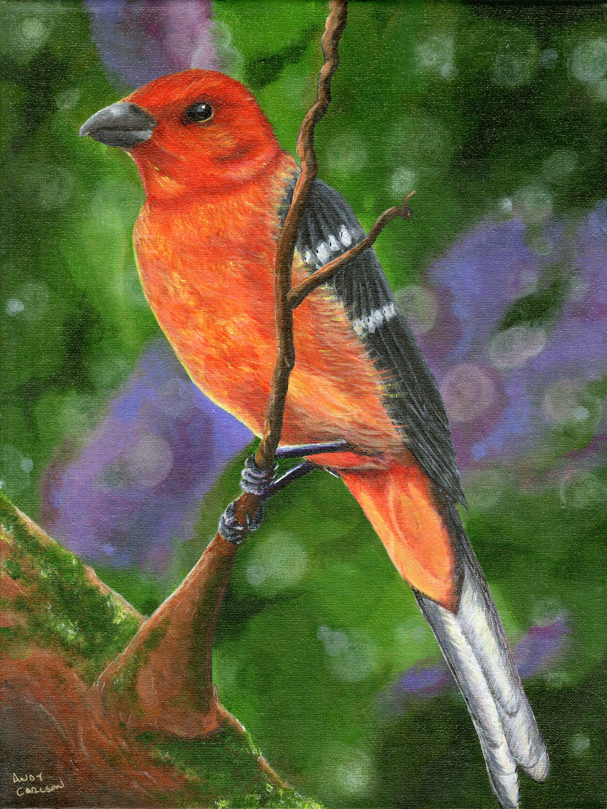 Flame-Colored Tanager – 18x24 Original Acrylic Painting by Andy Carlson