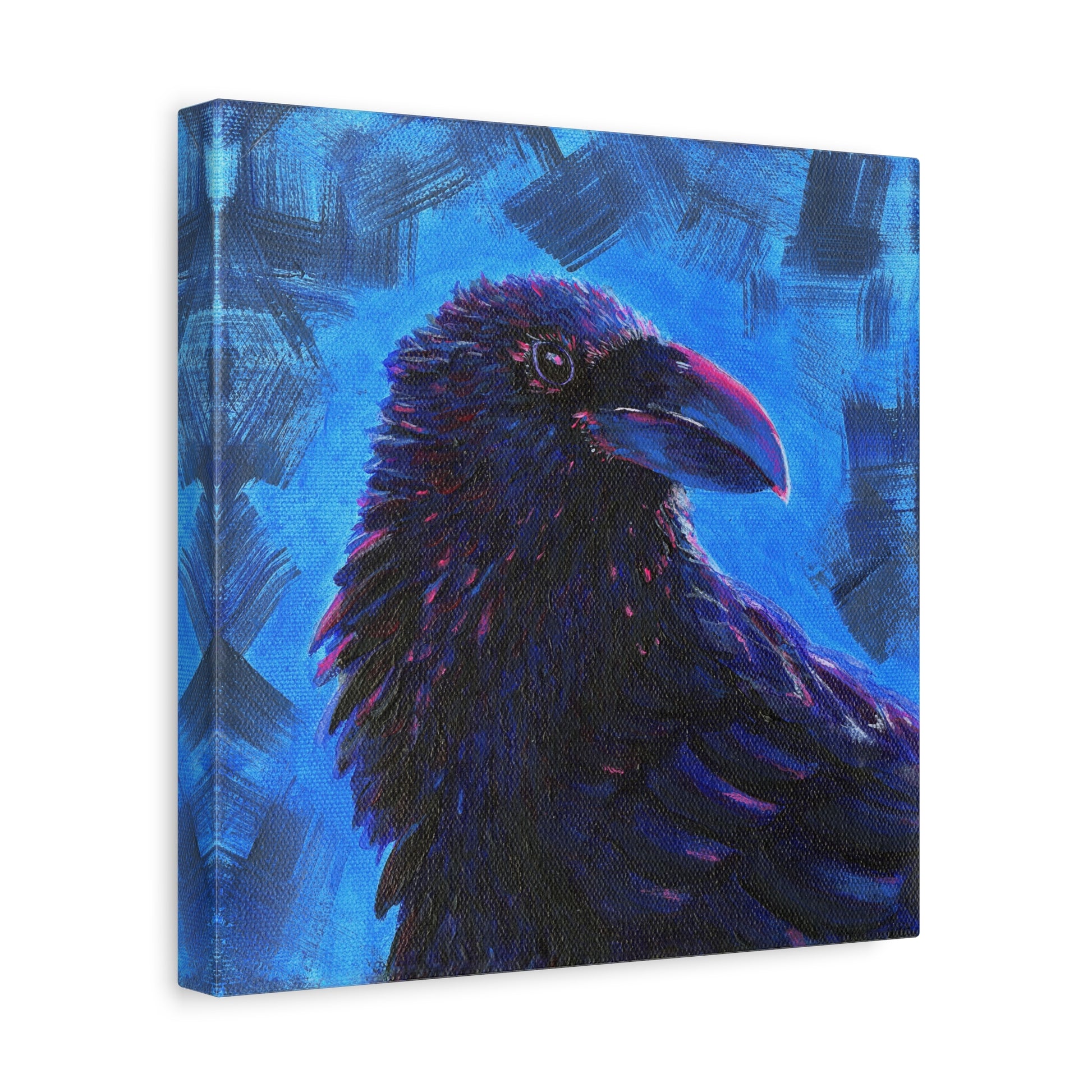 Moody and luminous, Murder 2 is the second painting in Andy Carlson’s six-piece crow series. Painted with acrylic on 8x8 canvas, this original artwork features the dark silhouette of a crow contrasted against a bold blue fluorescent background. The interplay of shadow and glowing color creates a piece that feels both mysterious and modern.